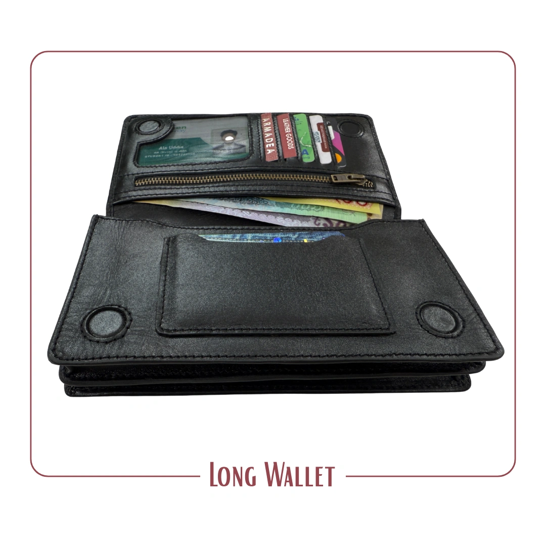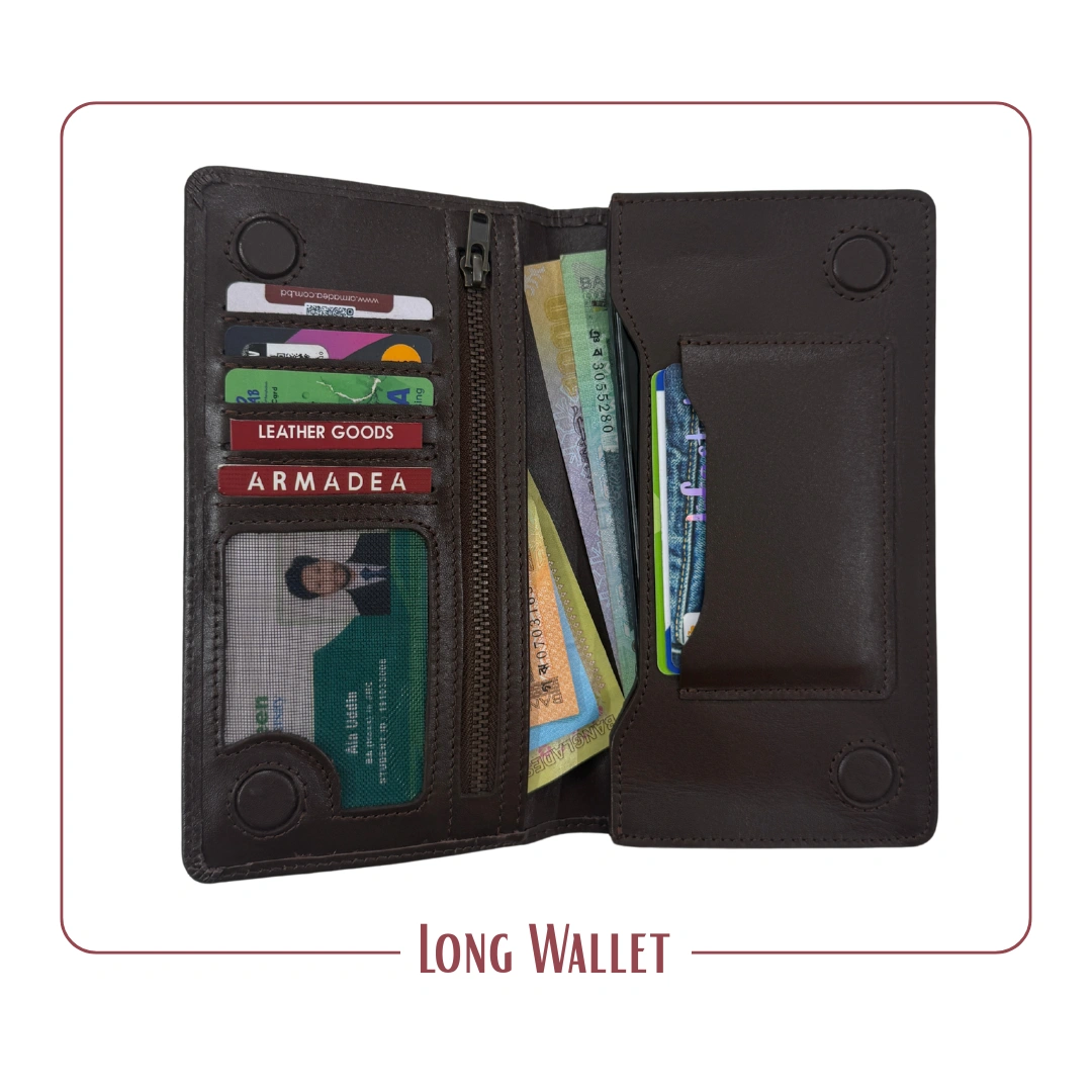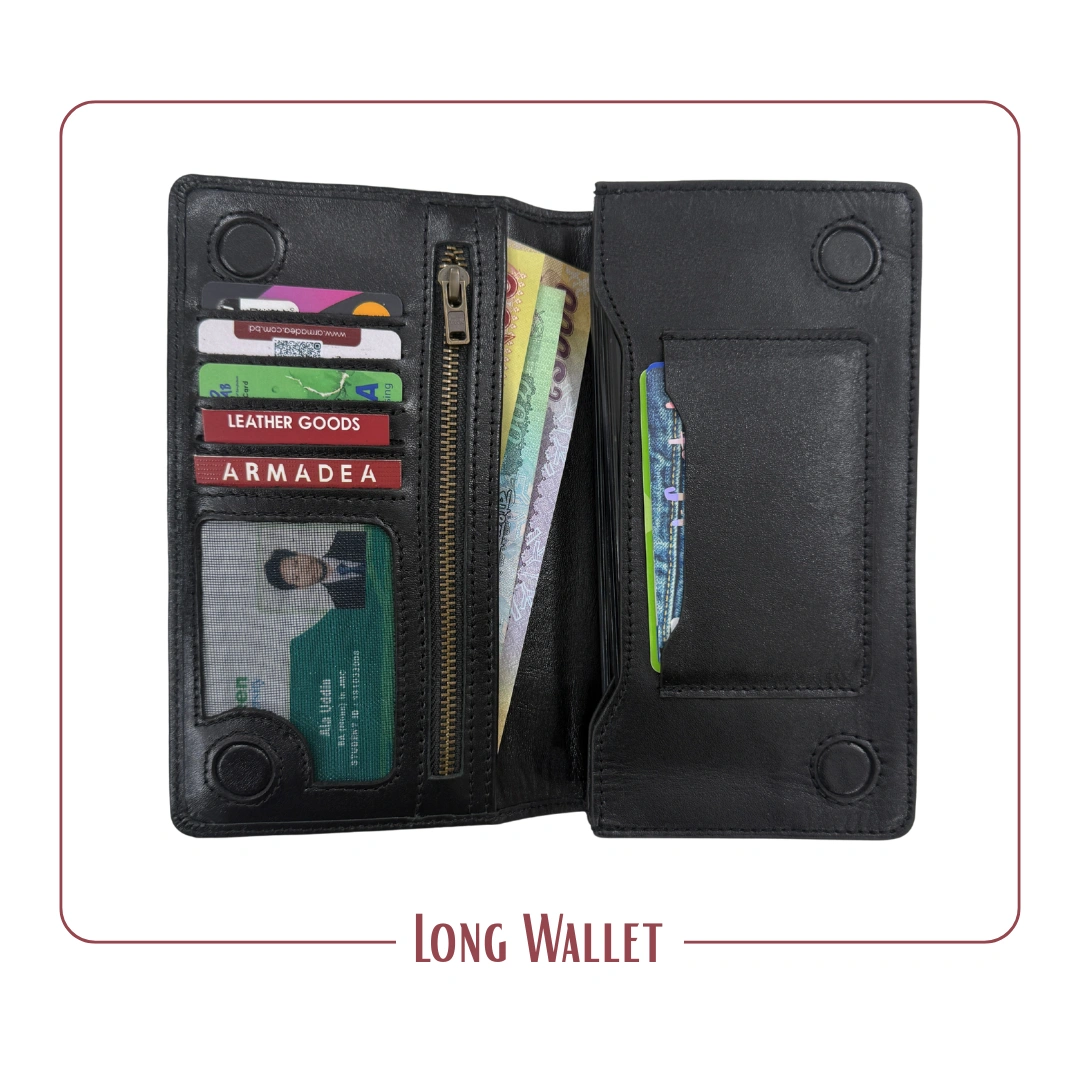 ৪টা ম্যাগনেট এর লং ডাবল মোবাইল চেম্বার ওয়ালেট, কিংবা ১টি তে মোবাইল রাখলে অন্যটিতে ক্যাশ টাকা / ডকুমেন্ট রাখতে পারবেন।